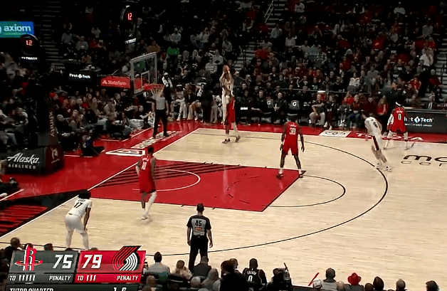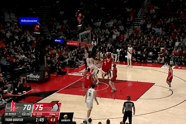 火箭一回合4个前场板、5次投篮不中,剩4分钟落后开拓者4分