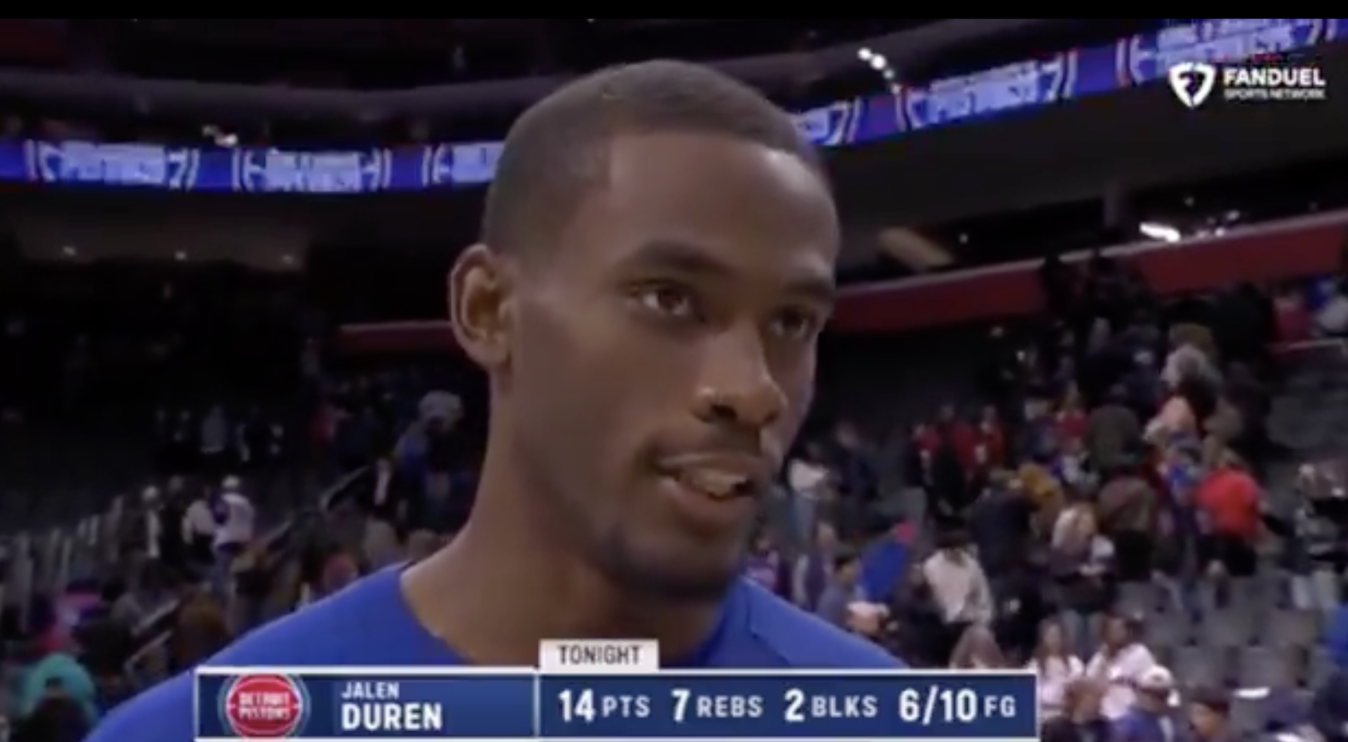 虎扑坎宁安穿着活塞配色Cut3Turbo,得到15分1篮板7助攻