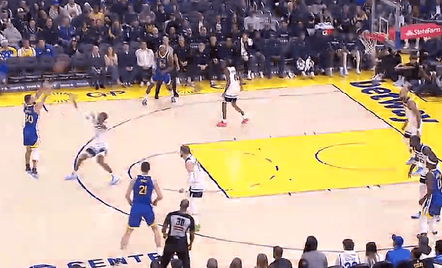 虎扑库里弧顶接球连中两记三分,个人开局连得8分