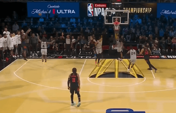 虎扑阿奴诺比投进第5记三分砍下28分,尼克斯剩2分钟领先马刺8分