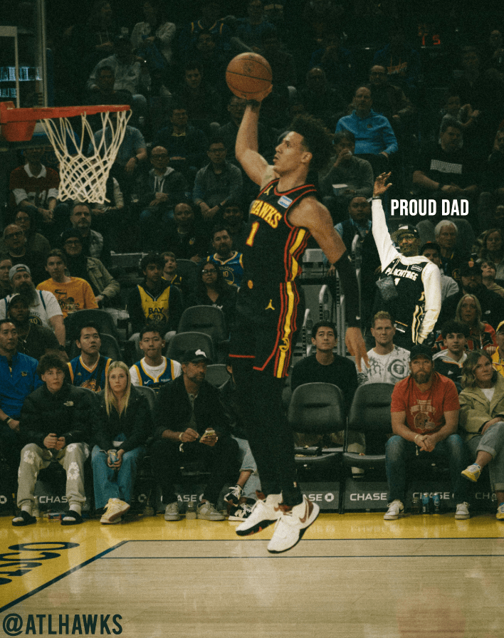 美媒晒照:杰伦-约翰逊滑翔飞扣时和他爸爸同框,真的太酷了