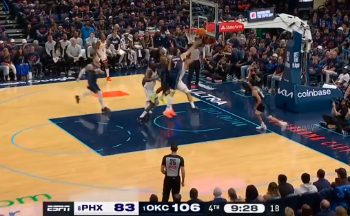 差距明显!半场战罢雷霆利用失误得分为17,而太阳仅仅为4分
