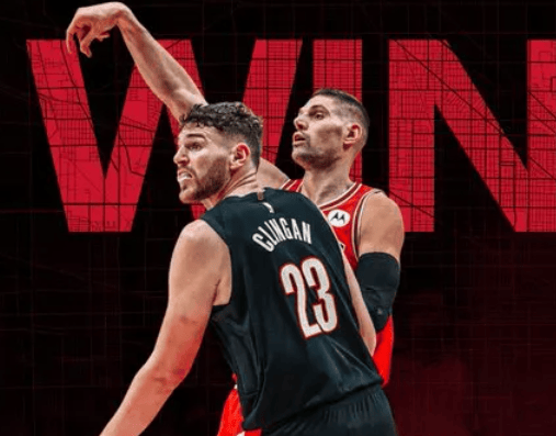 开拓者社媒分享本场比赛获胜海报,常规赛战绩来到7胜9负