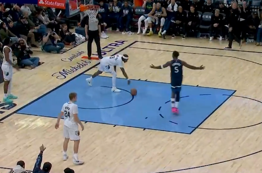 韦尔斯底角踩线两分球投进,灰熊重新领先森林狼到12分