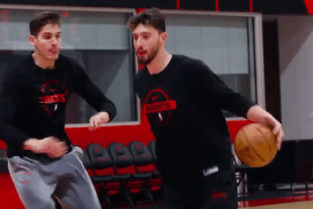 火箭晒队内日常:申京参与球队合练,展示单手劈扣和投射