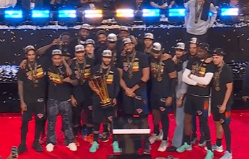 尼克斯战胜马刺夺得25年NBA杯冠军,全队激情撞胸庆祝