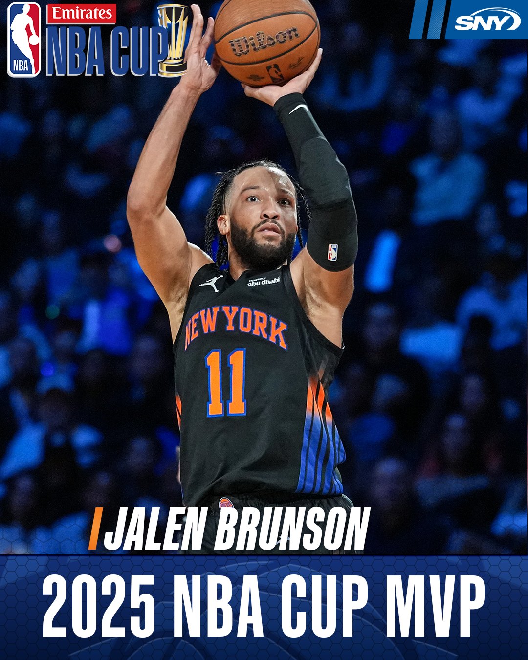 实至名归!尼克斯官方:祝贺布伦森夺得本届NBA杯MVP
