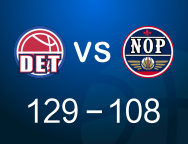 [赛后]鹈鹕108-129活塞,威廉森21分6板2助,杜伦30分10板7助