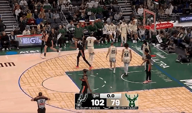 尚帕尼反击追身三分投进,马刺领先雄鹿到两位数分差
