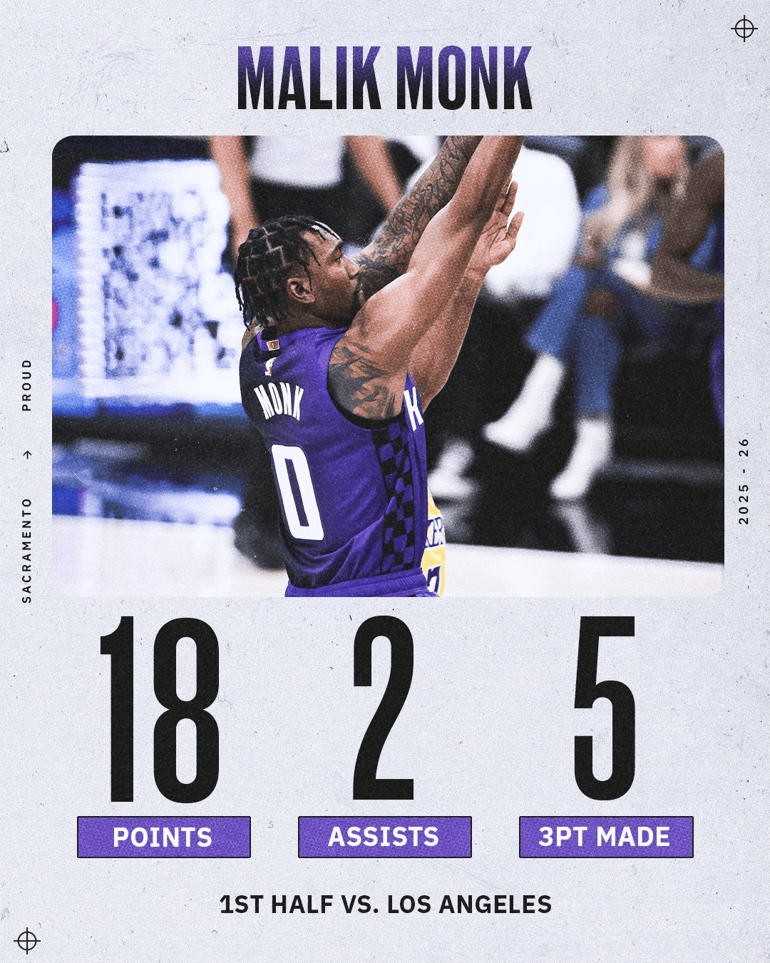 面对旧主!国王官方晒蒙克单节数据海报:18分2助攻5记三分