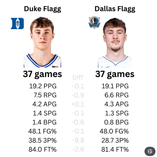 弗拉格NBA前37场对比NCAA生涯前37场:主要数据几乎无变化