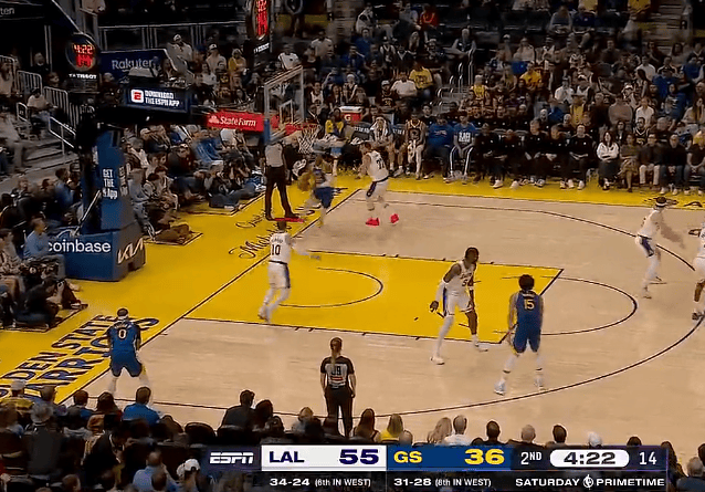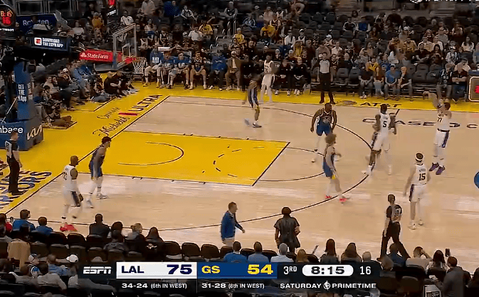 勇士60-87落后湖人27分,小佩顿空切拿到勇士全队最高12分