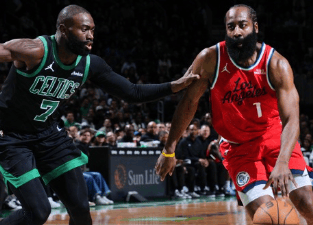 最后时刻!哈登面对怀特贴身防守,招牌后撤步三分跳投命中