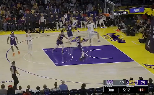 肯纳德助飞海斯轻松双手暴扣,湖人第三节再次领先至19分
