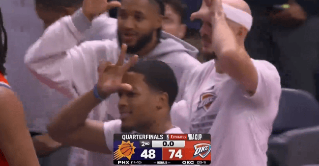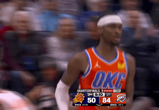 亚历山大掏球抢断反击打进拿到21分,雷霆已领先太阳36分