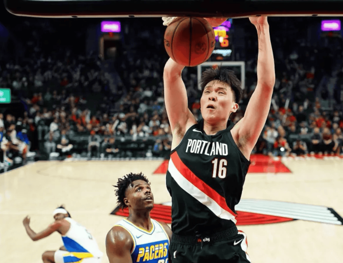 开拓者官方:韦斯利晃倒对手助攻杨瀚森暴扣,两人疯狂庆祝