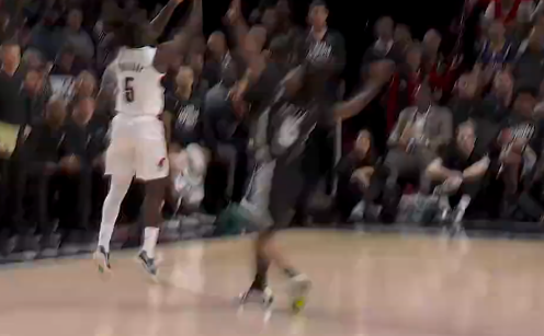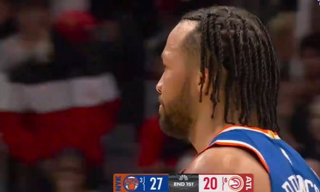 布伦森造成犯规后出手打成2+1拿到11分,尼克斯首节落后9分