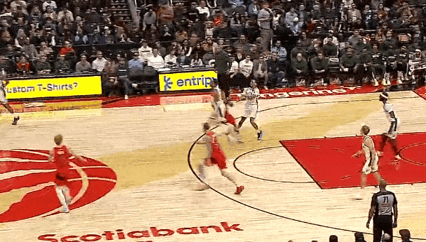 字母哥插入篮下造犯规,阿巴基主动对抗反被弹倒