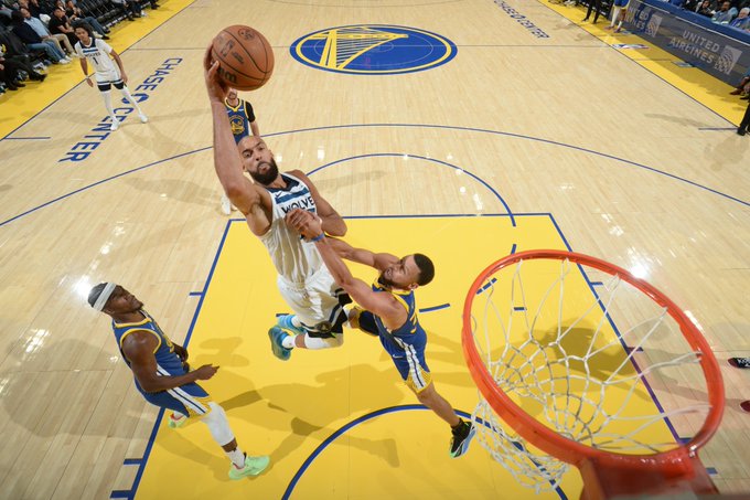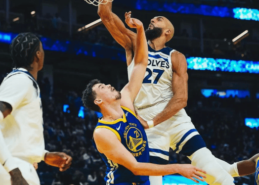 戈贝尔篮下接球强起再次隔扣波斯特,森林狼反超勇士1分