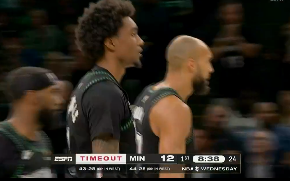 麦丹强攻上篮打进,森林狼12-4领先火箭进入首次暂停