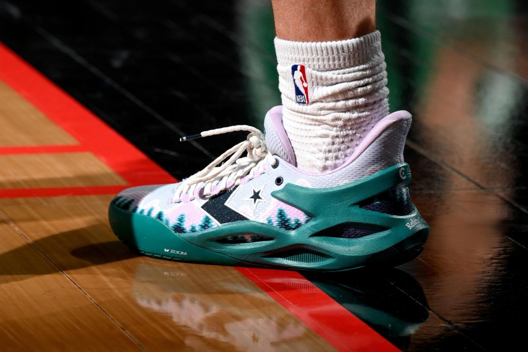 霍姆格伦穿着渐变配色KD18,得到10分7篮板2助攻2盖帽