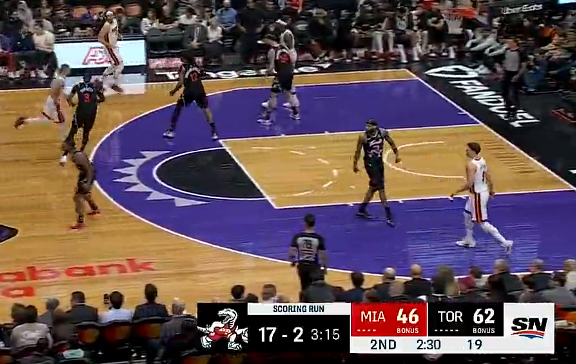 猛龙3分多钟打出一波17-2,领先热火到16分分差