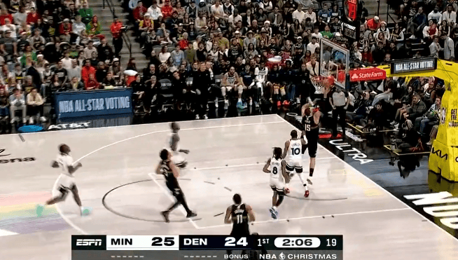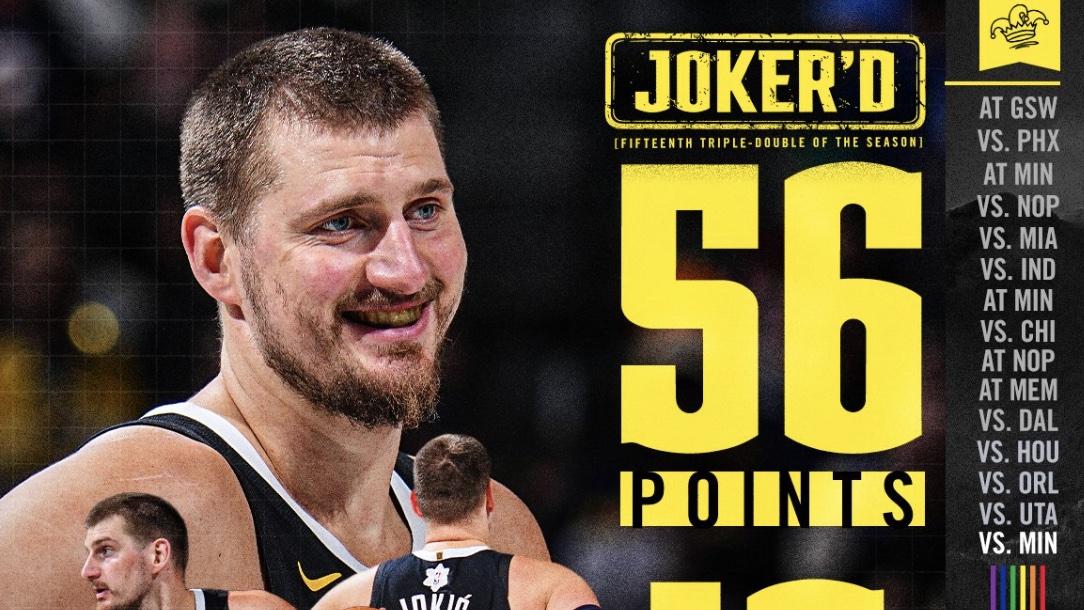 今天约基奇正负值-6,掘金其余首发球员正负值均为正数