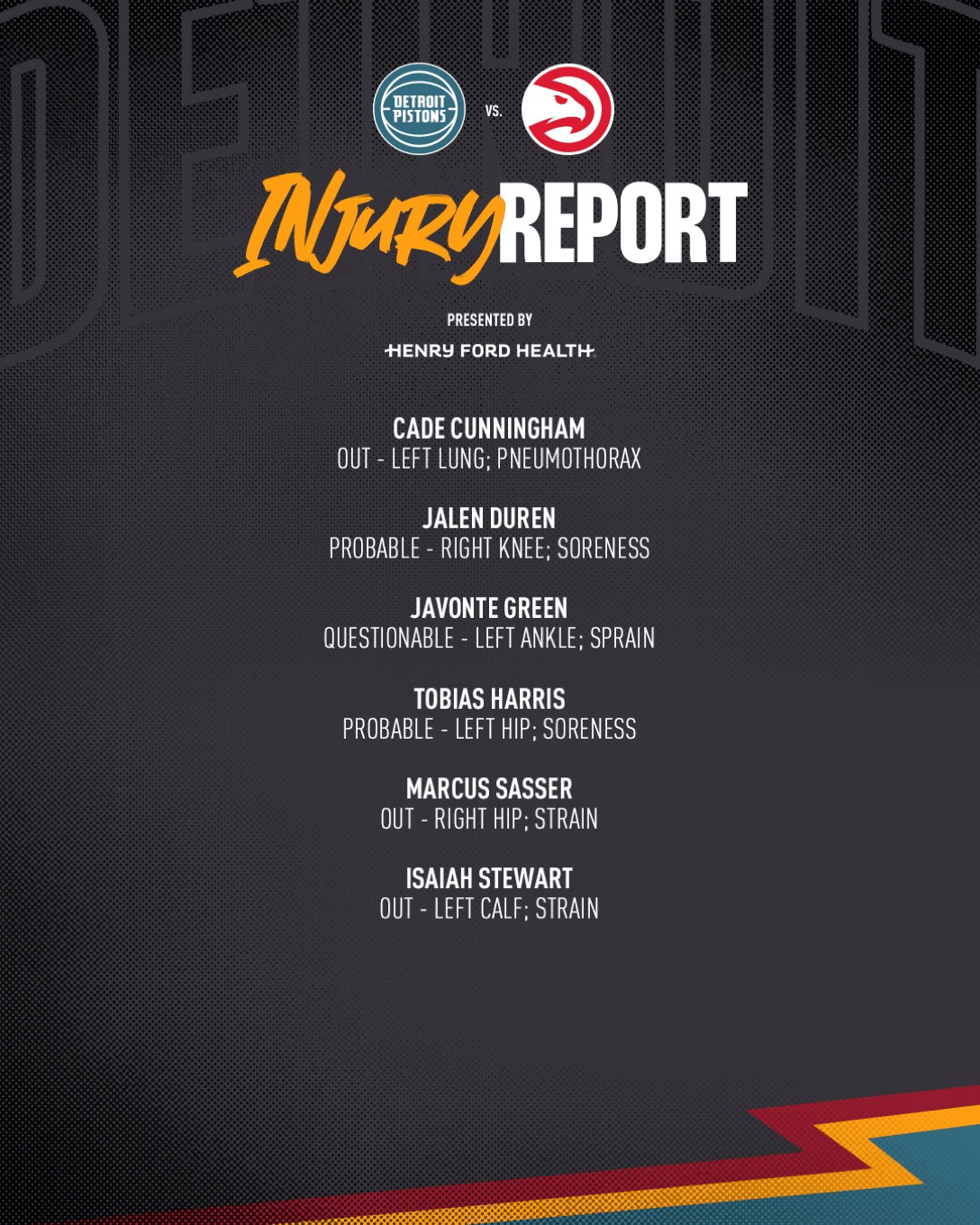 活塞伤病更新:杜伦&哈里斯大概率出战,贾文特出战成疑