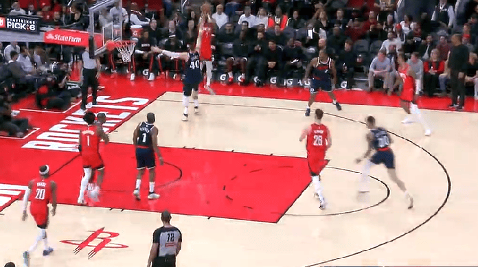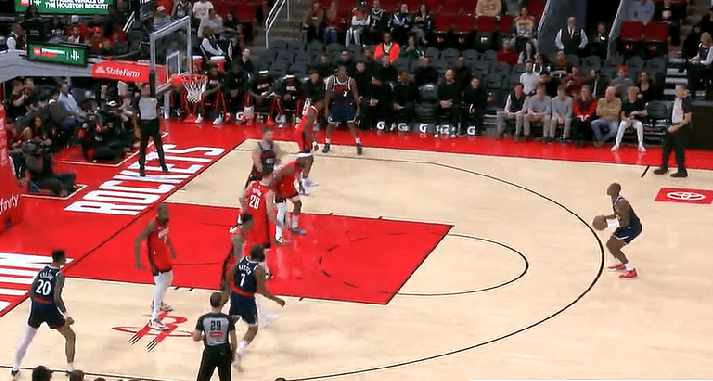 麦戈文斯点飞防守挂框飞扣,随后三分再中已经5中5砍下23分