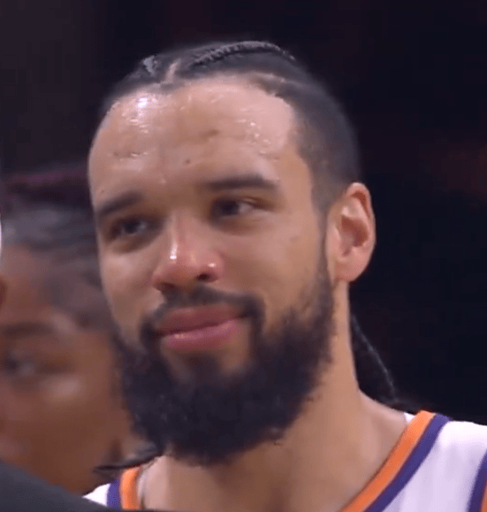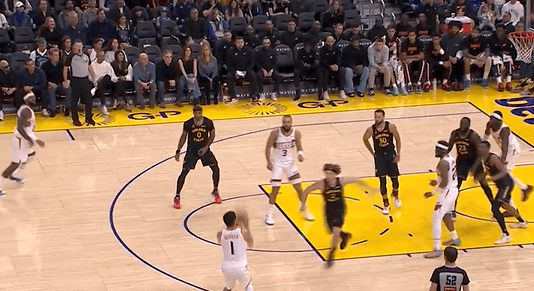 狄龙背打库里后助攻布克命中三分,目前两人已合砍18分