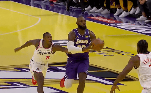 詹姆斯迎着祖巴茨漂移后仰跳投也进,湖人领先快船13分