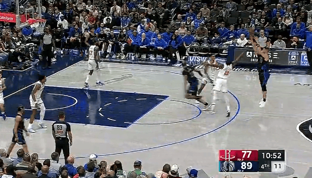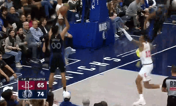克莱弧顶接球干拔三分也进,独行侠末节开局领先火箭15分