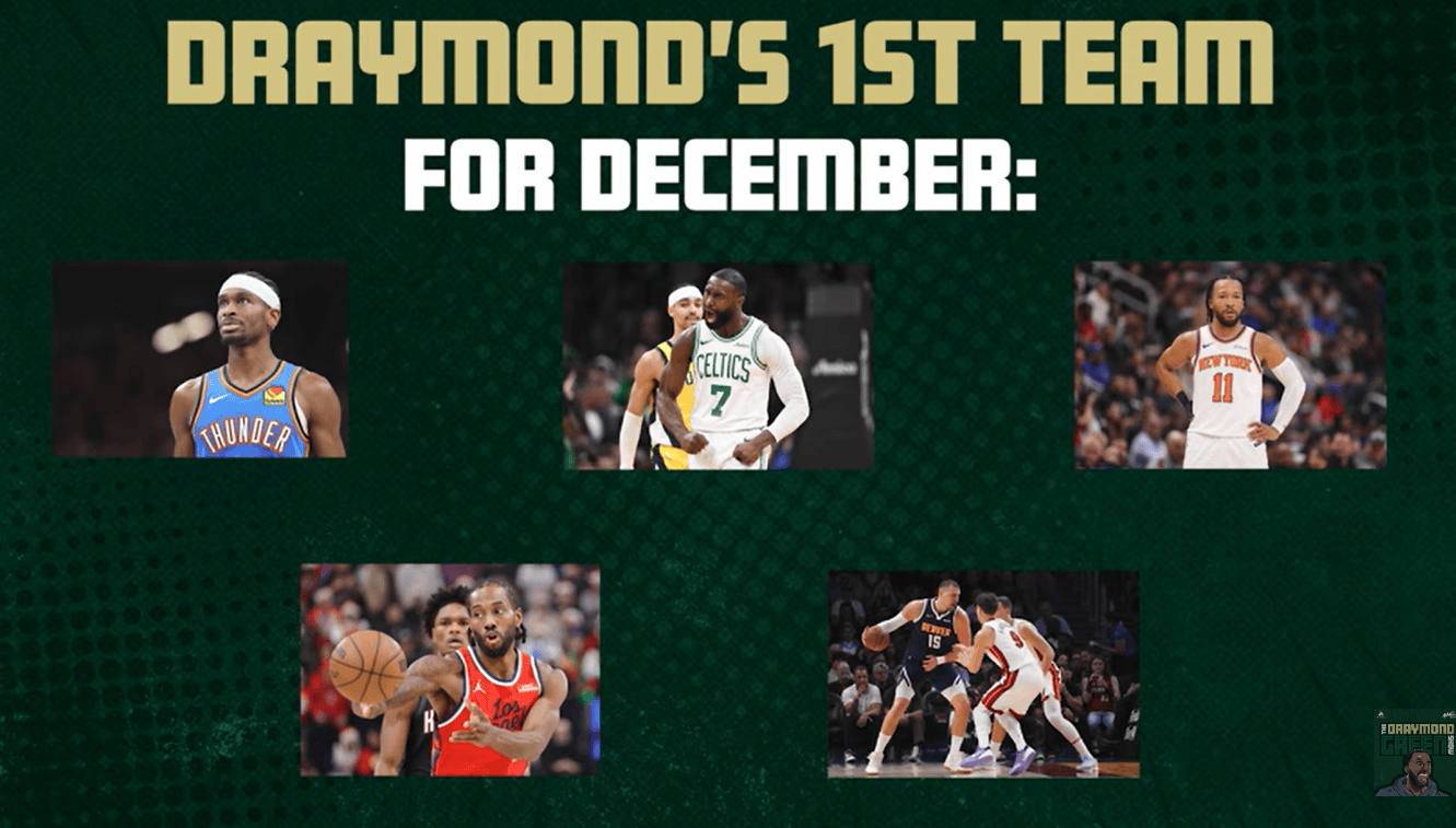 格林评选12月份最佳阵:SGA、布朗、布伦森、伦纳德、约基奇