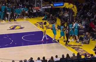艾顿快攻反击空中接力得手,湖人首节状态火热领先黄蜂12分