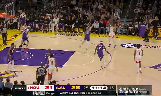 什么表情?美媒晒艾顿看着火箭进球的篮筐上方视角