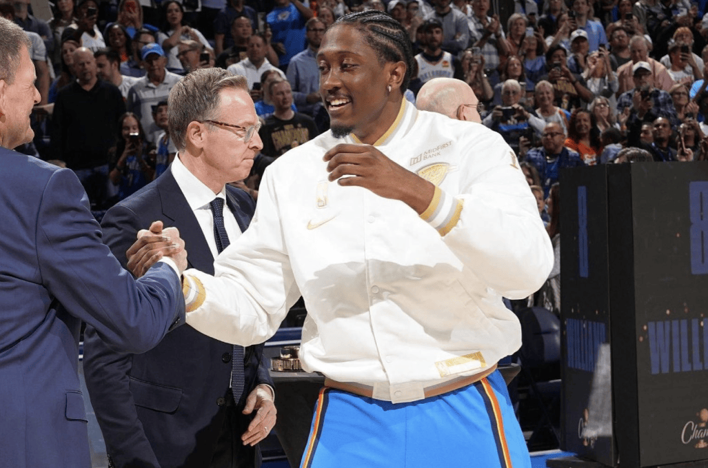 马克-威廉姆斯更新个人社媒,转发自己今日赛场扣篮照片