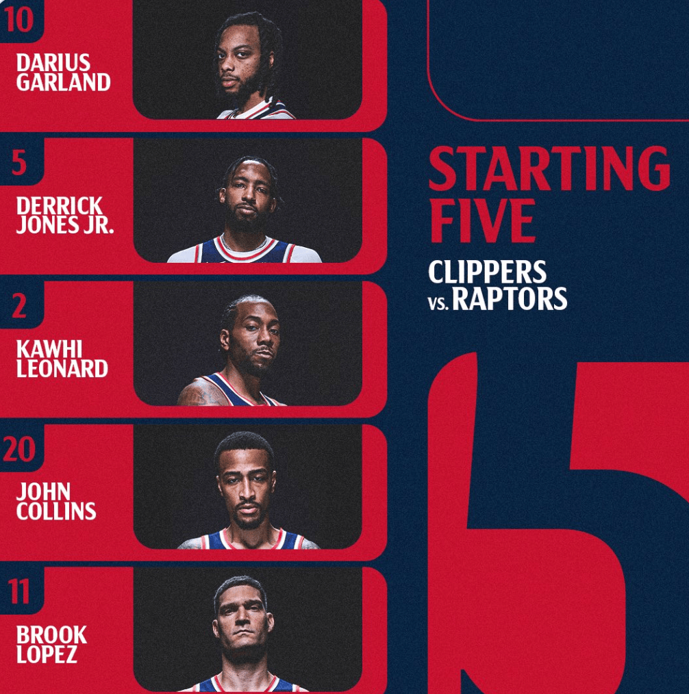 快船首发:加兰、小琼斯、伦纳德、科林斯和洛佩斯
