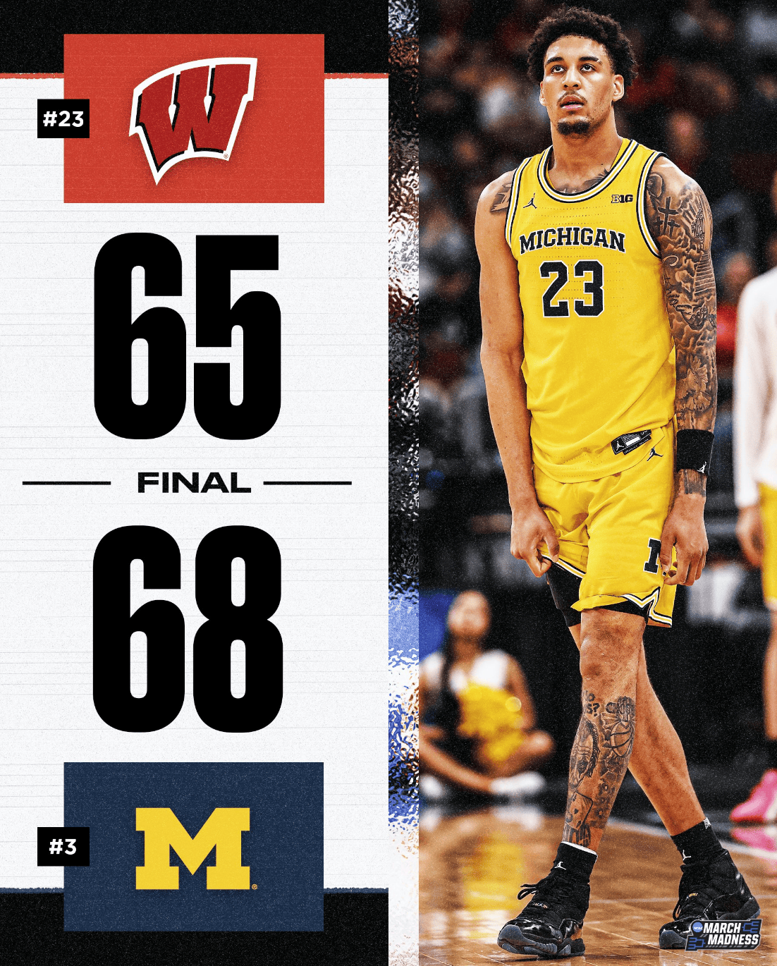 [NCAA战报]密歇根大学绝杀威斯康星大学,挺进BIG 10决赛