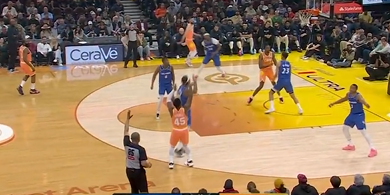 米切尔45度三分一箭穿心单节砍下11分,骑士领先魔术10分