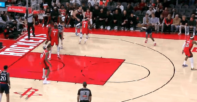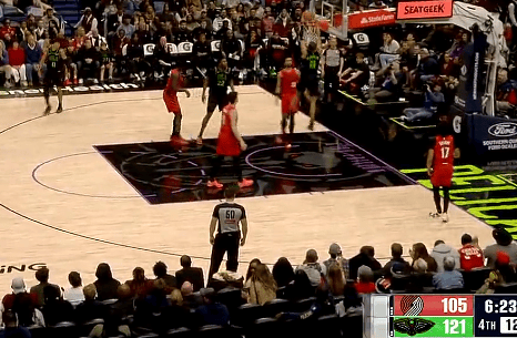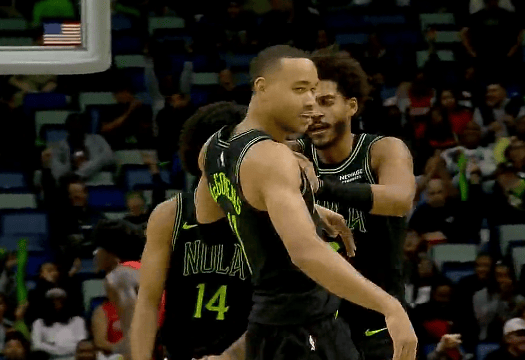 麦戈文斯压哨三分投进得到13分,鹈鹕三节105-97领先开拓者