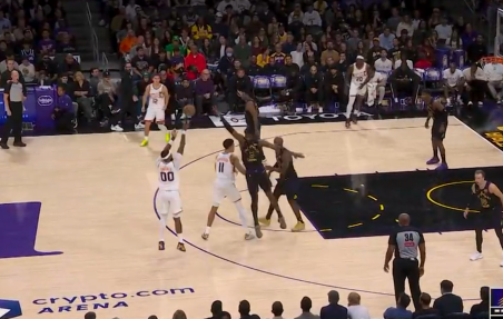 扛起进攻!詹姆斯半场11中7,三分4中3得到18分3篮板2助攻