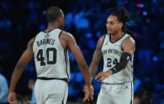 马刺球员巴恩斯在ins晒照,庆祝球队进入NBA杯淘汰赛