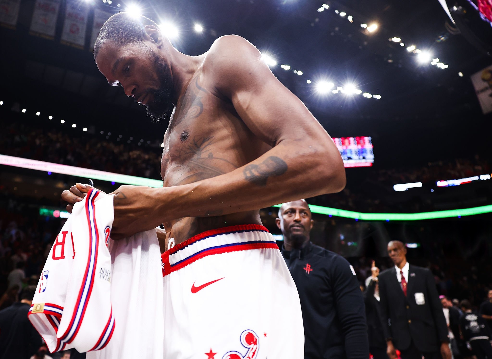 篮橄联动!杜兰特赛后将球衣签名后赠予NFL猛虎队外接手希金斯