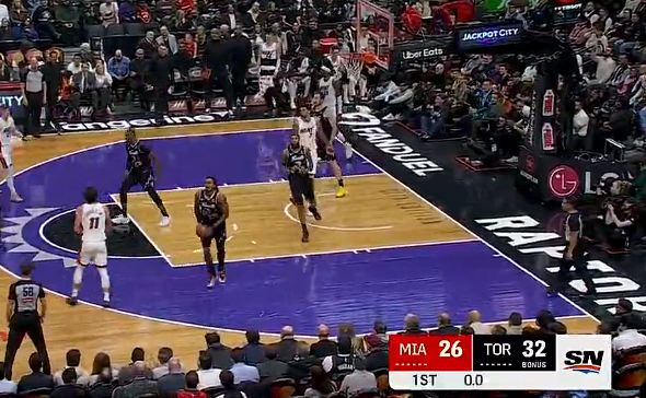 博伊尔斯压哨封盖哈克斯,猛龙首节以32-26领先热火