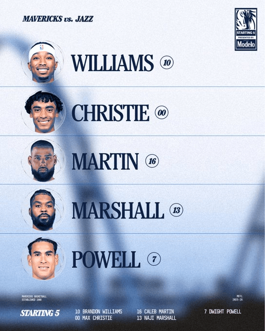 独行侠首发:布威、马绍尔、克里斯蒂、马丁、鲍威尔