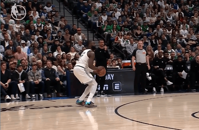 杰伦-布朗大空位干拔三分投进,首节7中4已经拿到12分