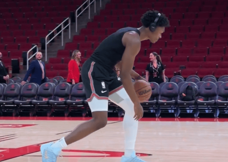 火箭社媒晒球员赛前热身视频,阿门表情严肃、十分专注
