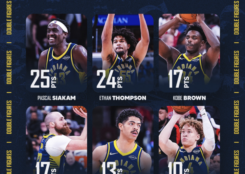 团队篮球!步行者官媒晒众球员海报:本场胜利六人得分上双
