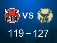 虎扑[赛后]雄鹿127-119公牛,特纳19分6板1冒,吉迪14分8板7助