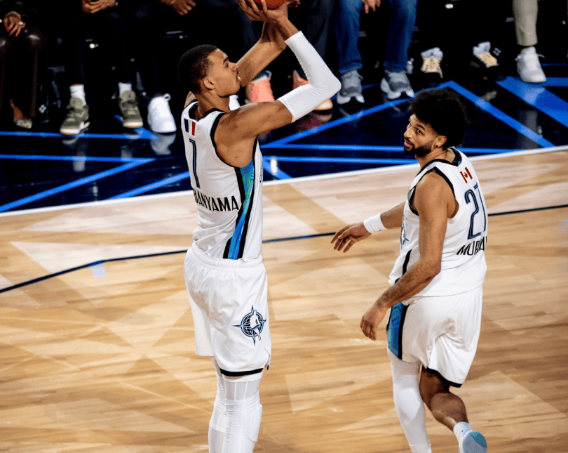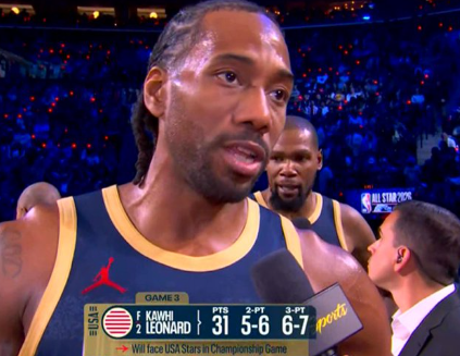 虎扑[赛后]世界队45-48美国条纹队,文班亚马19分2板0冒,伦纳德31分3板2断